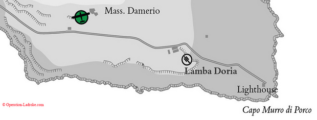 We may not know much about what happened to the Staffords in Glider 8, but for once we have a decent account from an Italian witness, even if he was only four years old at the time. Giovanni Nobile lived with his family in Masseria Damerio. Years later his memories of that night remained vivid. He recalled that two green gliders landed near the farm, one near the irrigation water tank, the other about 500 yards away. The occupants made off into the night. Giovanni’s father went to notify the garrison of the nearby ‘Lamba Doria’ gun battery, who sent some men to fetch the family and their farm hands.