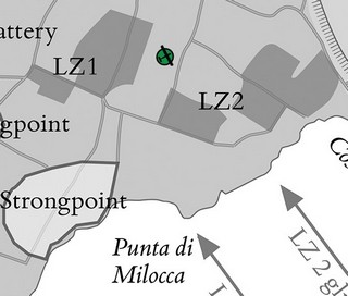 After landing almost exactly where they were supposed to, it must have been fairly easy for Sgt Bradley and his men to follow the much-studied route to their objective, the strongpoint Bilston (for a guide to the Italian defences and their codenames, see [here]). Bilston was a formidable position. It straddled the main highway to Syracuse and also the railway, which ran close by at this point. It consisted of a tobruk (an open-topped concrete MG emplacement) and 5 pillboxes, some big enough to hold anti-tank guns. It was surrounded by dense barbed wire [map]. Bilston proved a tough nut to crack.