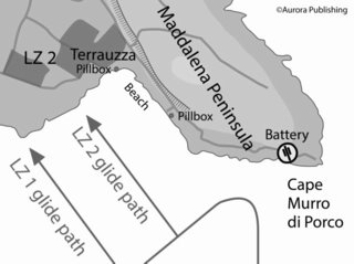 The main seaborne landings were taking place six miles away (and all the way down the east coast of Sicily from there), but there was at least one troopship closer to the bay off Terrauzza: HMS Ulster Monarch. Its LCAs were carrying a squadron of SAS raiders to a landing spot under the cliffs of Cape Murro di Porco, at the tip of the Maddalena Peninsula. The primary task of the SAS was to knock out a battery of heavy guns on the cape that threatened all the troopships, and all the thousands of soldiers they carried. On the way in to the cliffs, the tough SAS warriors had their hearts torn by piteous cries from airborne troops drowning in the dark, but they had to ignore them.